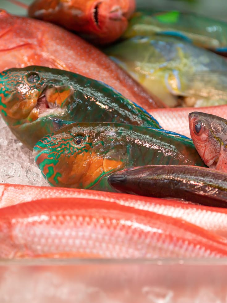 - 魚類、甲殻類、貝類、軟体動物、海藻・藻類、魚卵など